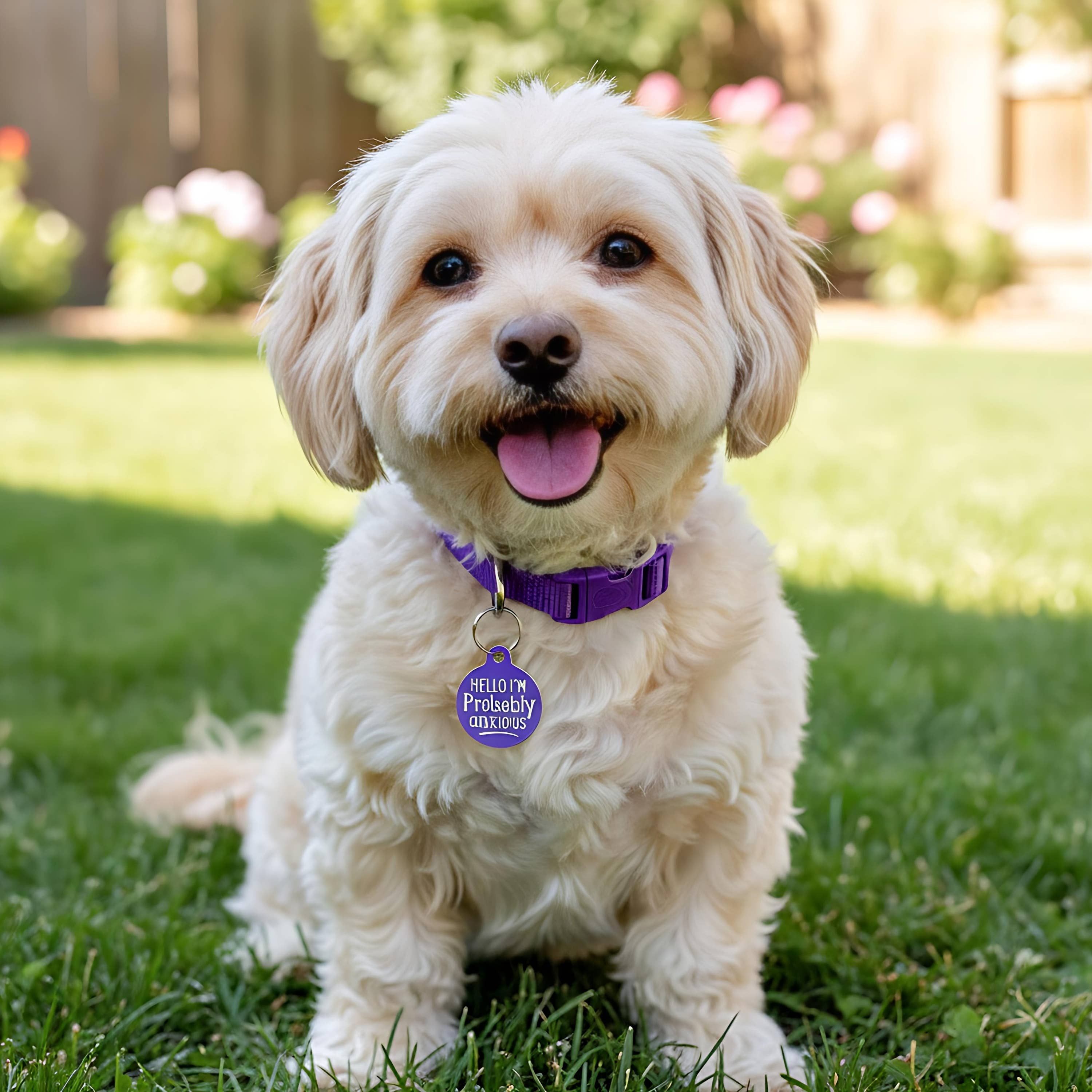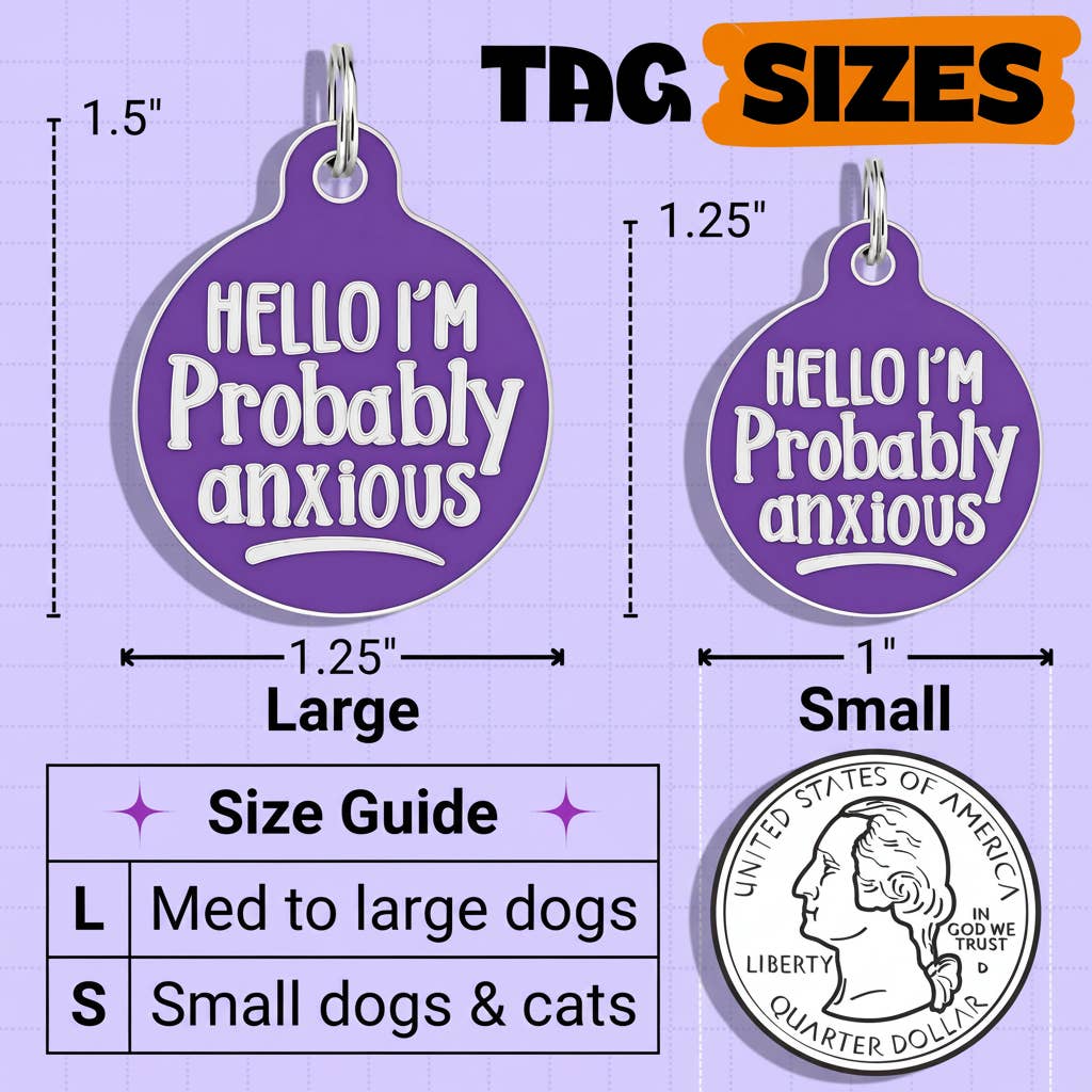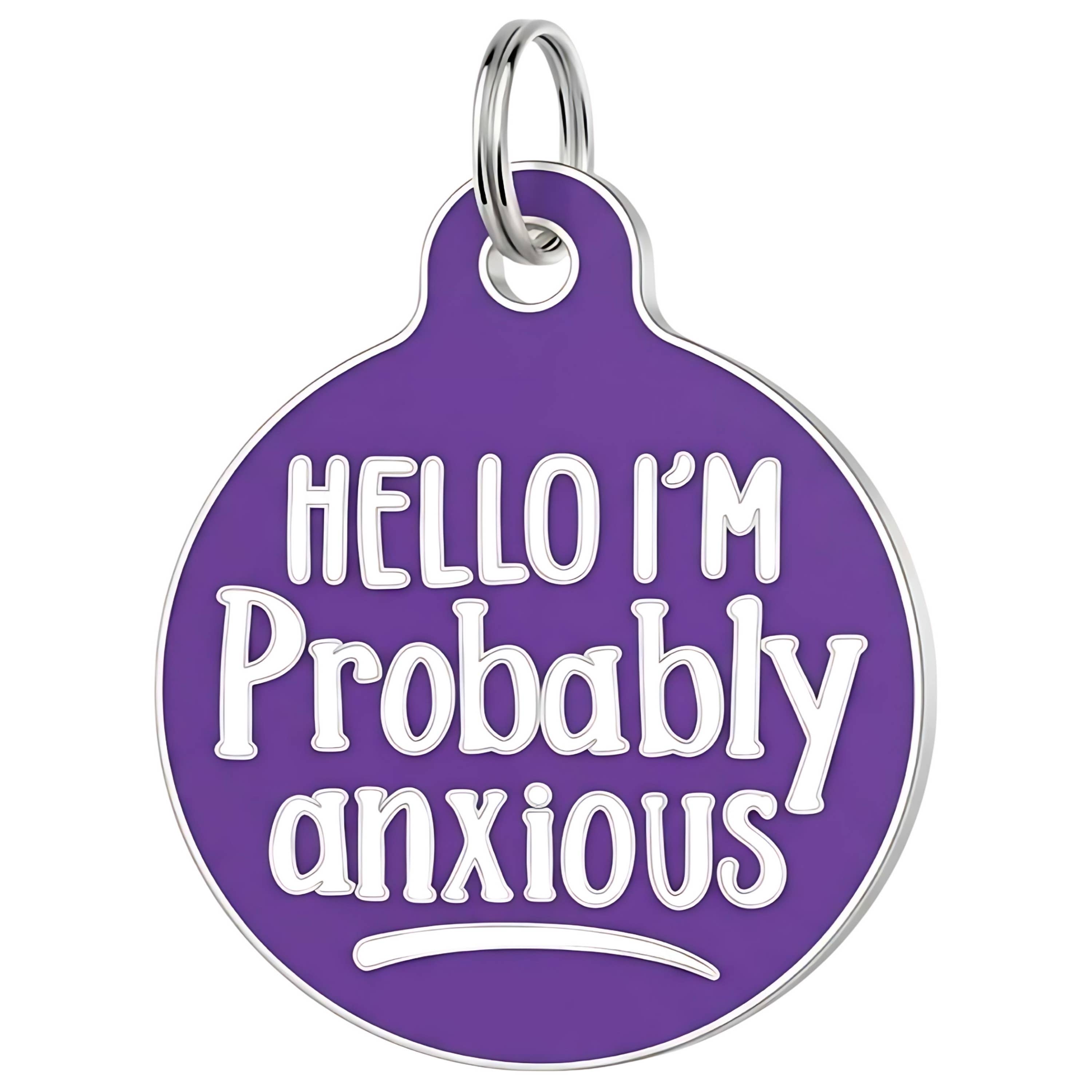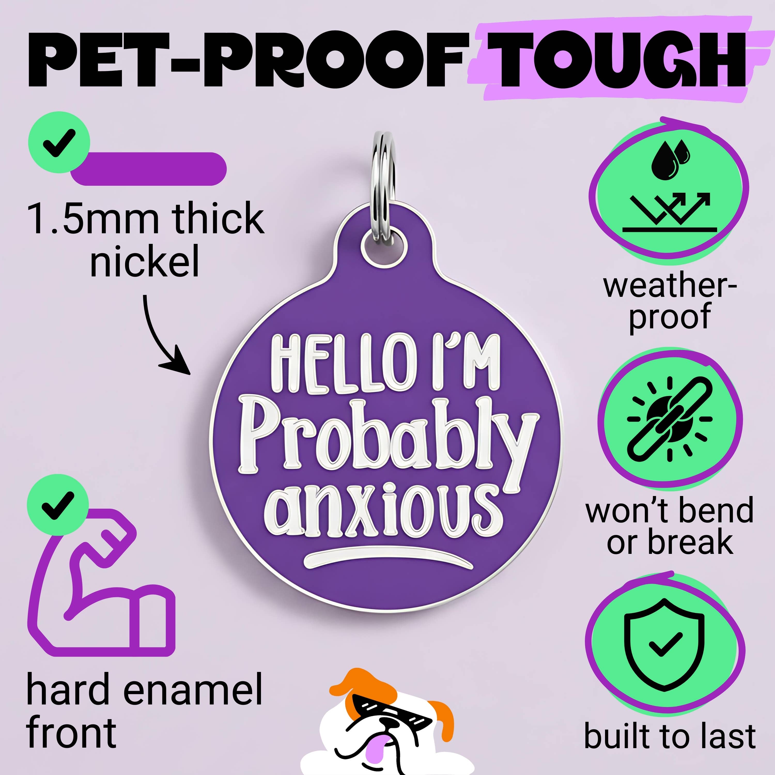 Pet ID Tag with QR Code - Hello I'm Probably Anxious - Purple