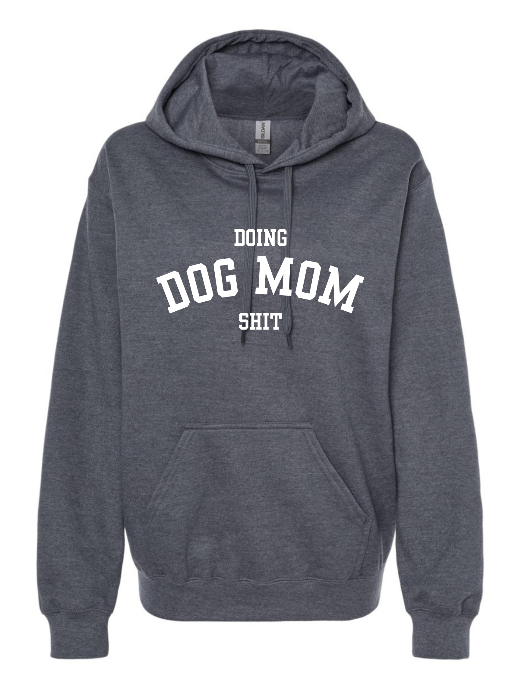 The "Doing Dog Mom Shit" hooded sweatshirt is playful and sassy, perfect for every dog mom. Stay comfy while walking your furry family or lounging on the couch with this midweight crewneck. A must-have for any dog mom!