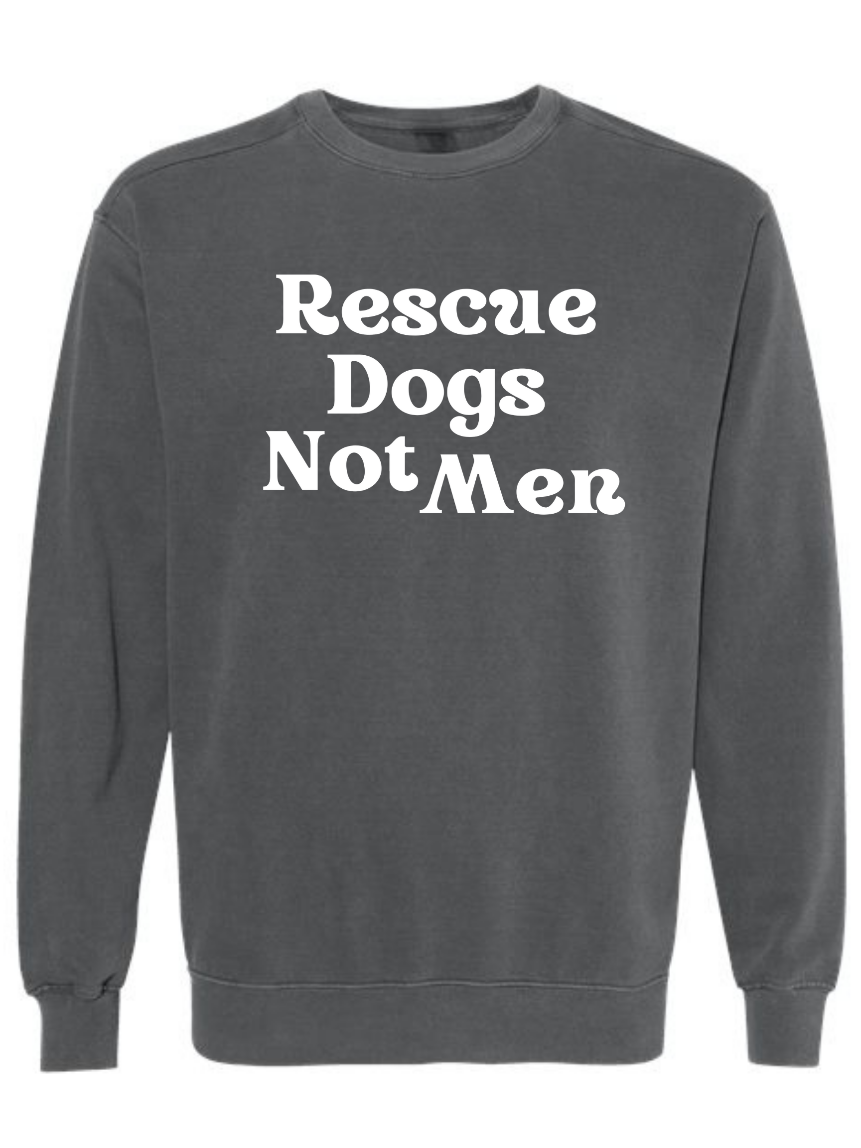 Our Rescue Dogs Not Men unisex tee now comes in a spicy pepper shade. What more could you possibly add?