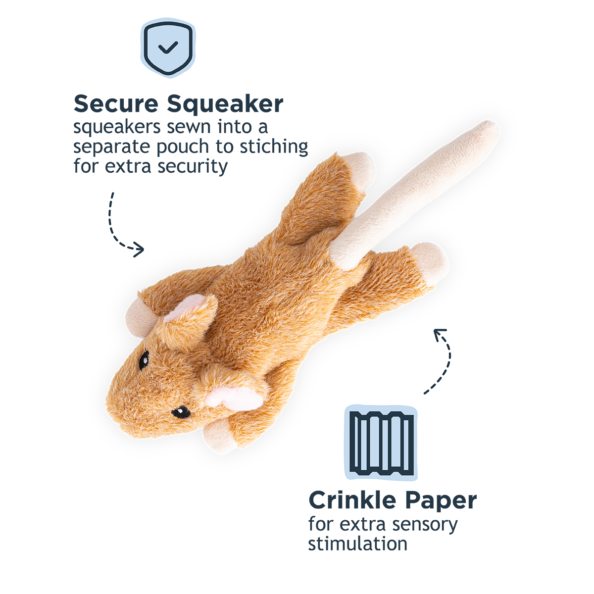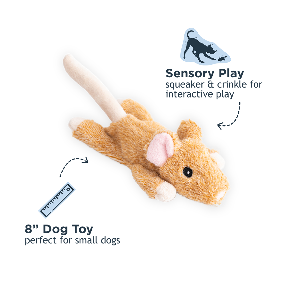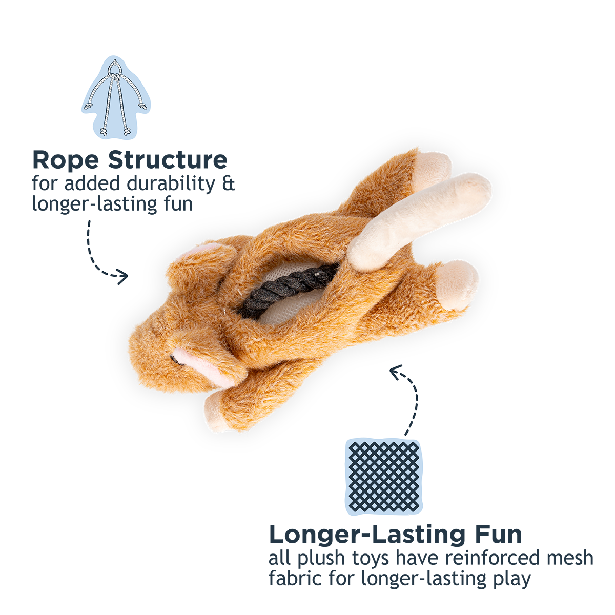 Meet your pup's new cuddle buddy! This 8-inch squeaker toy features plush, stuffless design that's gentle on teeth and perfect for snuggle sessions. The reinforced mesh construction keeps up with enthusiastic play, while an internal rope core adds durability and texture dogs crave. The squeaker is tucked safely into its own protective pouch and double-stitched for worry-free fun. Ideal for dogs who love to nuzzle and carry their toys everywhere. Simply spot clean to keep it fresh and ready for the next playtime adventure.