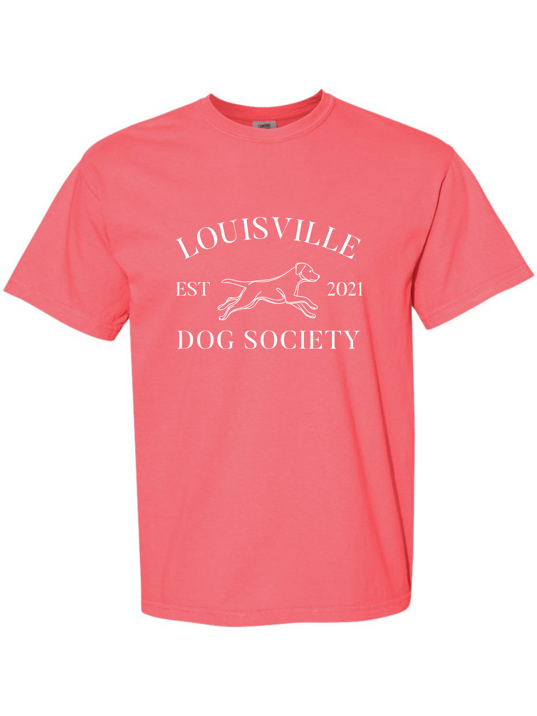 Embrace your inner dog aficionado with our Louisville Dog Society Unisex Tee in watermelon with white font - the perfect addition to your Spring wardrobe! Because here in Kentucky, being a dog parent is more than just a hobby - it's a way of life!