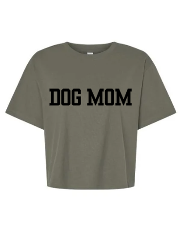 Get ready to celebrate your love for your furry best friend with The Dog Shop exclusive "Dog Mom" Crop Top. This stylish, comfortable army green crop top features a playful design that's perfect for dog moms and pet lovers everywhere. Made from quality 100% ring-spun cotton that's garment-dyed for a lived-in feel, it's ideal for everyday wear, whether you're relaxing at home or out and about. The relaxed fit ensures all-day comfort, making it a go-to piece for your wardrobe. Pair it with your favorite jeans or shorts for an effortless, fun look that shows off your dog mom pride.