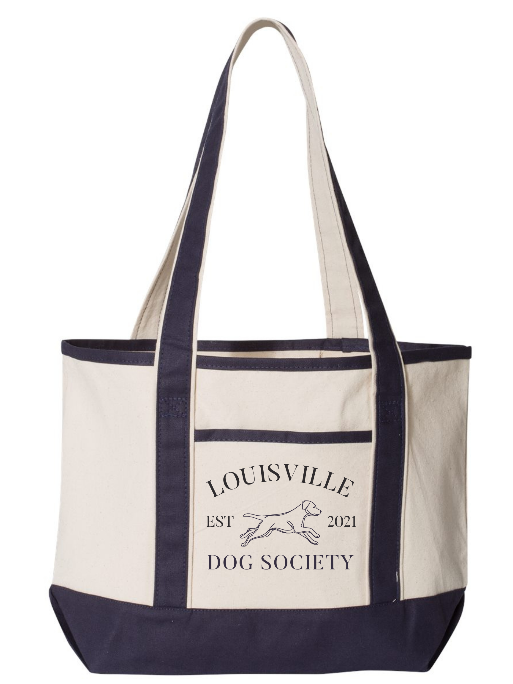 Tote your pup's essentials in style with the Louisville Dog Society Tote! This spacious 20L bag combines a classic natural and navy color scheme that works with any outfit. Perfect for trips to the dog park, vet visits, or weekend adventures, it's got plenty of room for toys, treats, leashes, and everything else your furry friend might need. The durable construction handles daily wear and tear, while the versatile design makes it just as handy for your own gear. Whether you're a devoted dog parent or just love showing off your Louisville pride, this tote is the ultimate companion for life with your four-legged best friend.