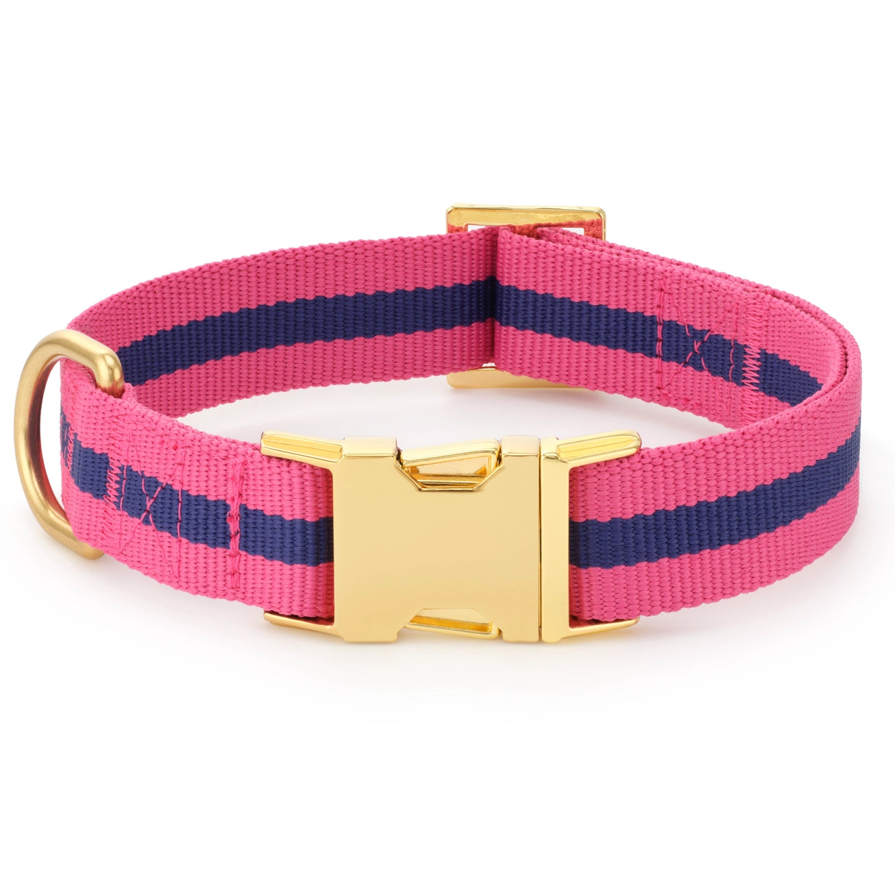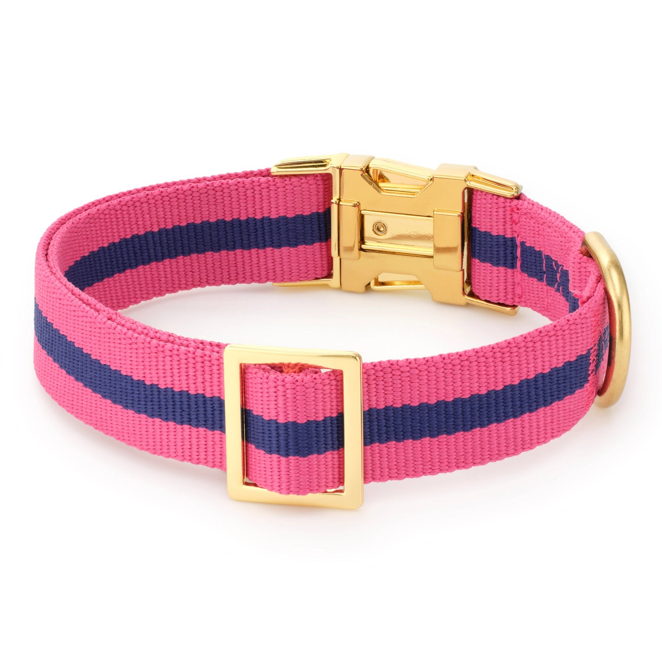The Foggy Dog Sloane Striped Webbing Dog Collar - Navy and Pink